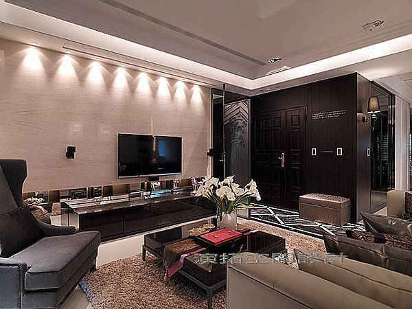 設計師在擁有最多電線的電視牆及客廳小茶几附近做了線板蓋,把電線收的不著痕跡,另外,在大理石主牆面上用木頭做固定基底,將電視喇叭直接固定在牆上,而且木頭底座完全不外露,因為如此的注重細節,所以才能展現出乾淨俐落的牆面